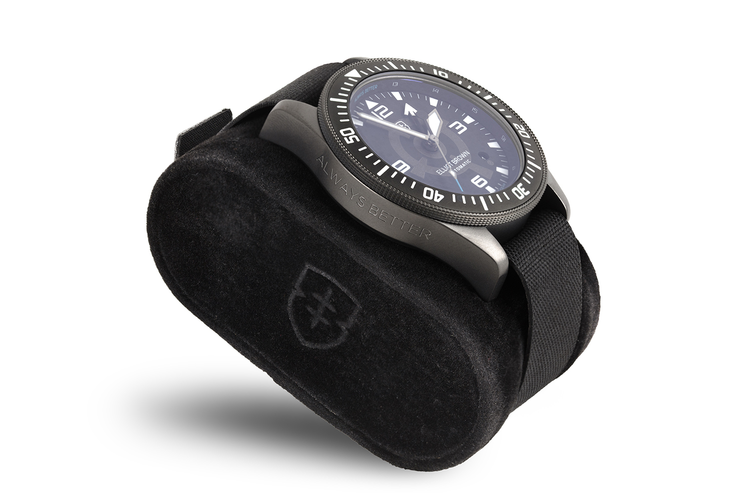 Blue Force Gear has been known to collaborate with brands that match our design philosophy. We manufacture gear for professionals to use to make their lives easier – and better. And the level with which we measure ourselves is exceedingly high. Blue Force Gear came across British watchmaker Elliot Brown and could tell that their standards were aligned with our own. Conversations began, and the BFG Limited-Edition Holton Automatic GMT Watch was born.