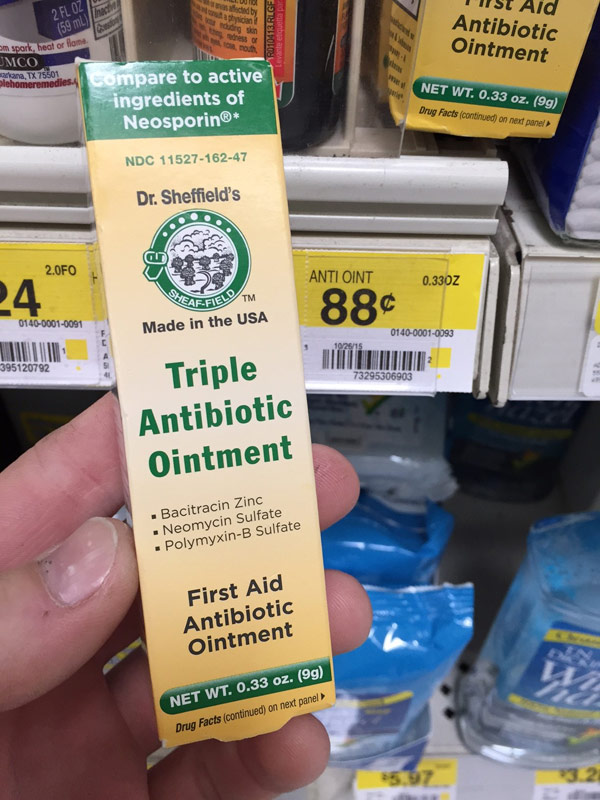 Antibiotic Ointment is useful for keeping wounds from getting infected. It also serves as a barrier by preventing foreign debris from getting into cuts and scrapes. At 88 cents, it’s worth having, and a tube should last you years.