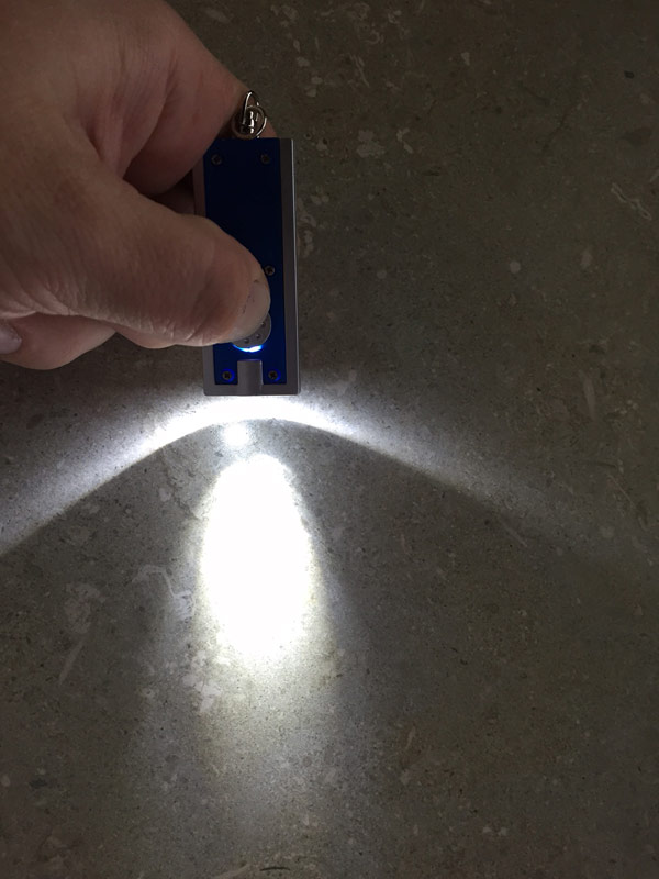 This compact LED light was two dollars. It’s not a weapon light and it doesn’t turn night to day, but it will help guide keys to a door when no other light is available, aid in a roadside engine inspection, route cables under a desk, or prove itself useful in any other situation when a Surefire Fury® flashlight isn’t needed. I ditched the key ring to save weight and space.