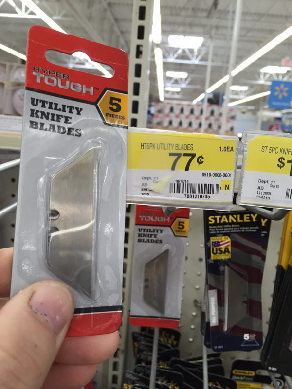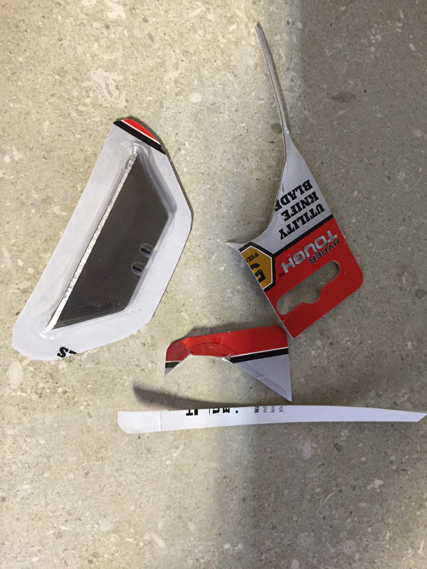 To make sure the blades would fit in the kit, I trimmed the packaging, but left the blades in the blister pack to avoid the potential of any accidental cuts. Utility blades like these will rust if you’re in a humid climate, so make sure to check for rust when auditing your kit.