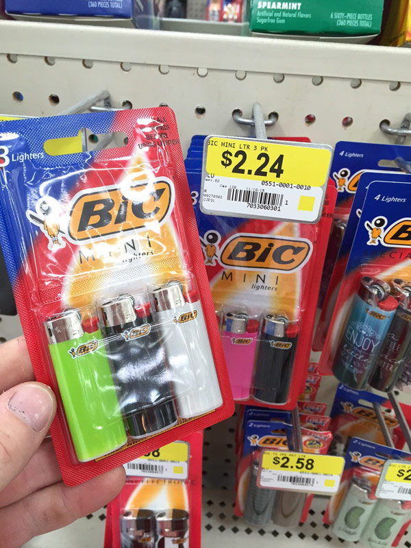 Lighters are another “just in case” item to keep in your kit. Yes, there are many ways to light a fire, but when someone needs a quick light, it’s not practical to pull out a bow drill or steel wool and battery. The “mini” version of this lighter was available in a three-pack so I now keep an extra one in my car and another at my desk.
