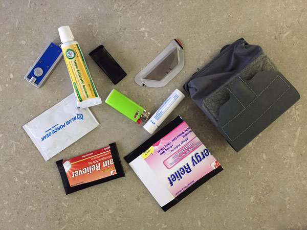 I start every kit with medical needs in mind since medially-related solutions are the hardest to improvise in dire situations. Keep in mind, this kit is by no means intended to replace a full medical kit. This kit is designed to treat small issues like allergy flare ups, cuts, scrapes, etc.