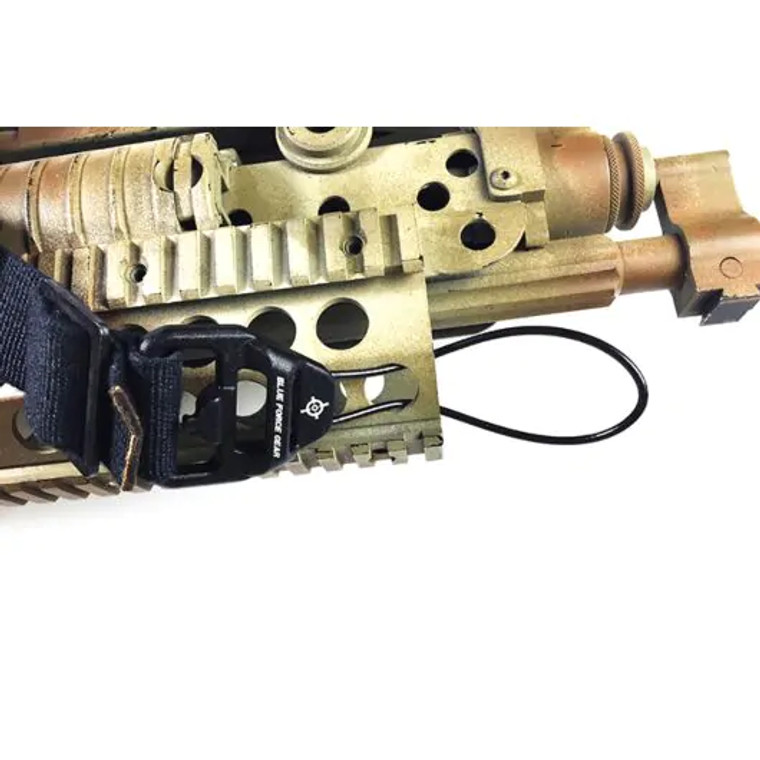 The BFL (Belt Fed Loop) offers a loop-and-lock attachment system for securing the weapon sling to the rifle. The forged aluminum body makes it the toughest and most resistant to heat hardware from the entire BFG sling loop series. This design allows for the same versatility found in the Universal Wire Loop, without needing to remove the weapon sling completely from the hardware for attachment purposes.