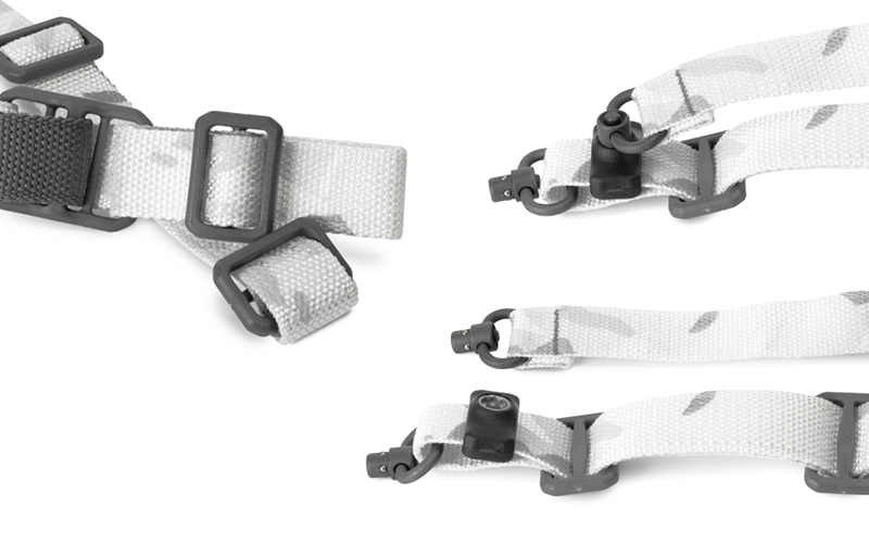 Quickly transition from carrying to combat-ready. Our patented Quick Adjuster lets you loosen or tighten the sling in seconds, so you can go from slung on your back to aiming downrange with a single swift motion. For the Alpine edition, we've outfitted the adjuster with a Wolf Gray pull tab and matching Wolf Gray nylon hardware. The gray tab provides a subtle contrast against the white MultiCam Alpine webbing, making it easy to spot and grab even with gloves on. In true VCAS fashion, this quick-adjust system bridges the gap between comfortable carry and rapid deployment – an essential feature when operating in chilly conditions where speed and dexterity are key.