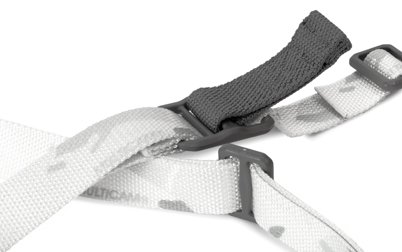 The Alpine VCAS features our latest-generation DuPont Zytel® nylon hardware for the adjuster and triglides – a high-strength polymer that's lighter, tougher, and more flexible than traditional plastic components. These Wolf Gray adjuster pieces not only look great against the MultiCam Alpine pattern, but they also perform under pressure (and in freezing temperatures) without cracking or adding extra weight. This is the same upgraded nylon hardware trusted by the U.S. military on many of their issued BFG slings, so you can have full confidence in its durability. In short, you get metal-like strength in a lighter package. No rattling, no rust – just rugged performance, whether you're trudging through snow or headed to the range for some winter training.